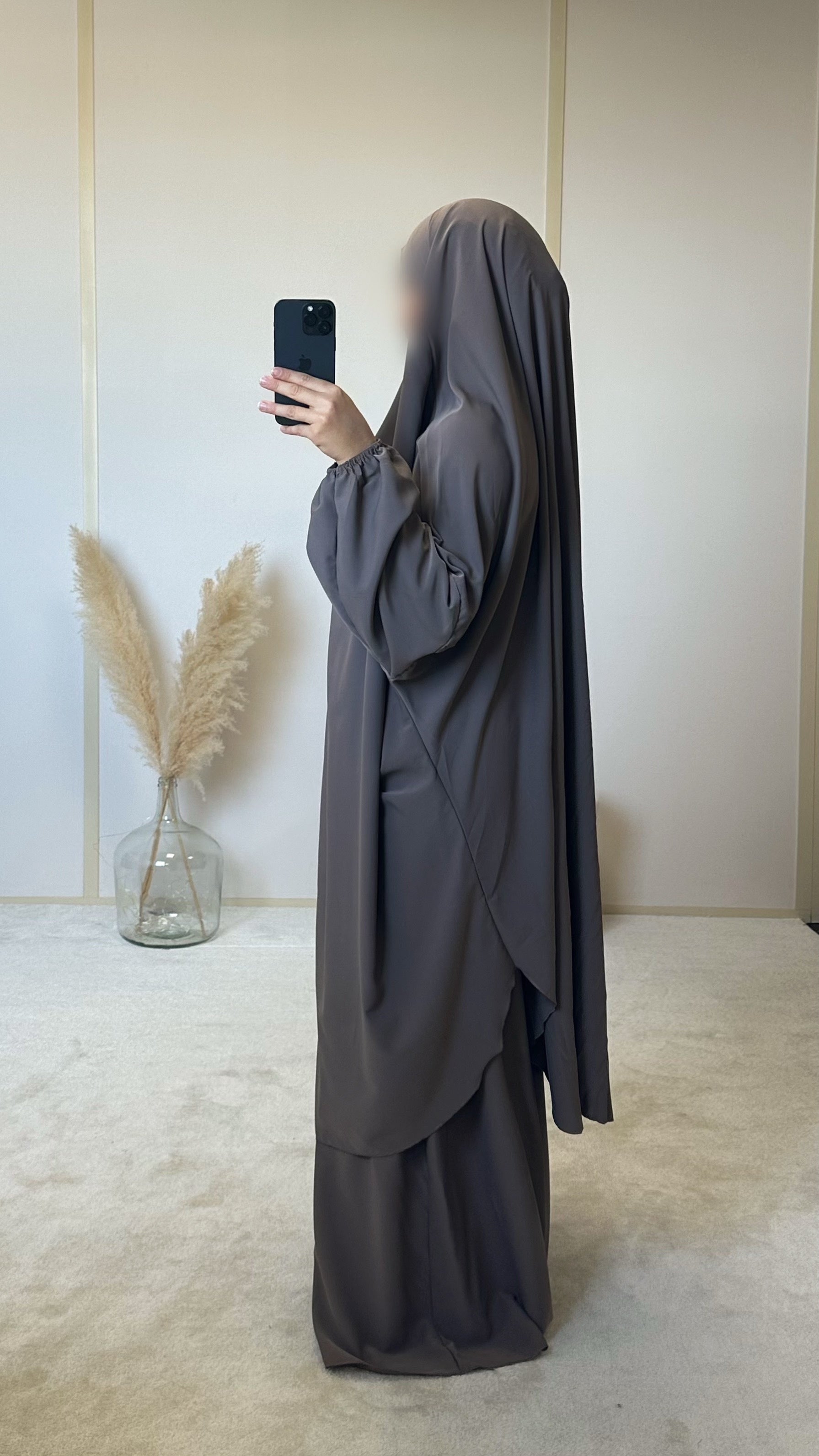 Jilbab 2 pièces avec jupe en soie de Médine [taupe]
