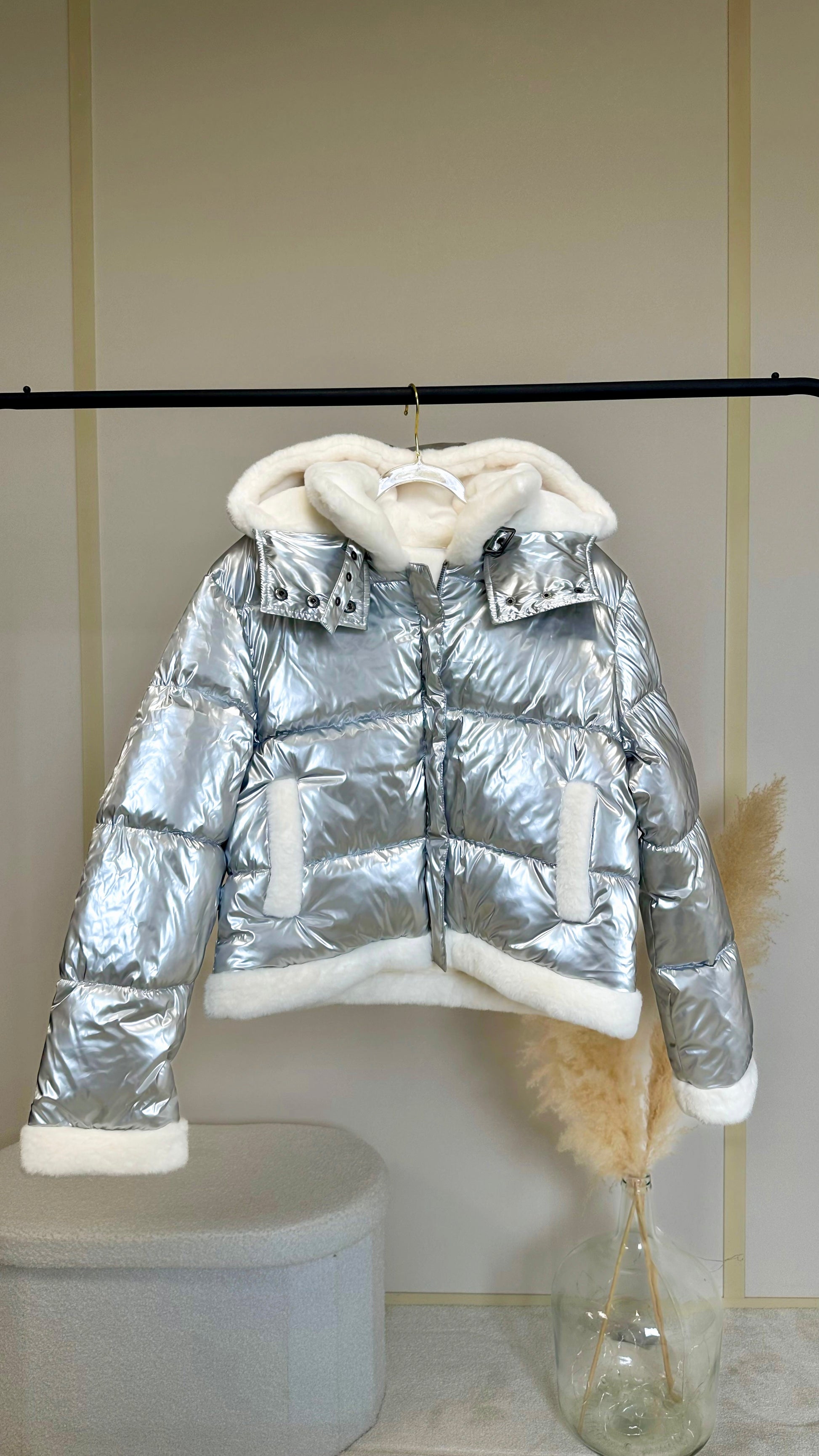Doudoune argentée fourrée